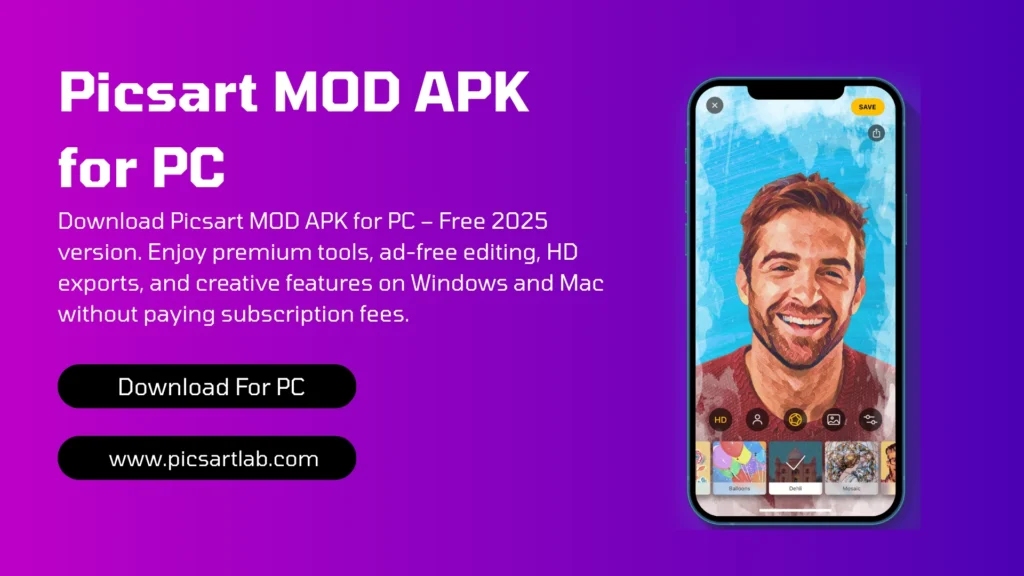 Picsart MOD APK for PC is a modified version of the popular Picsart editing app, designed to run on Windows and Mac devices. Unlike the free official version, which has restrictions and paid features, the MOD edition unlocks everything for free.